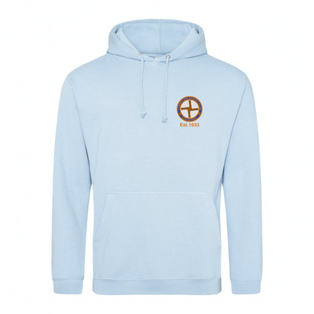 Kangaroo pouch pocket with small hidden opening for ear phone cord feed.